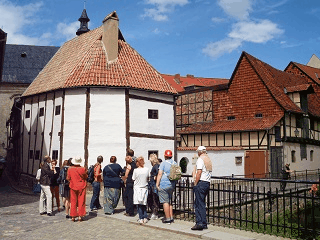 Die klassische Stadtführung in Quedlinburg: Engagierte und kenntnisreiche Stadtführer begleiten Ihre Gruppe durch die engen Gassen der mittelalterlichen Stadt Quedlinburg. Es geht um Fachwerkstile, erstaunliche Sehenswürdigkeiten, die Skurrilitäten des Zusammenlebens in alter Zeit und um die "Weltpolitik" des 10. Jahrhunderts, welche zum großen Teil in Quedlinburg geschrieben wurde. Neben der großen Geschichte erstaunt Quedlinburg durch die unendliche Fülle an liebevoll gepflegten baulichen Details.